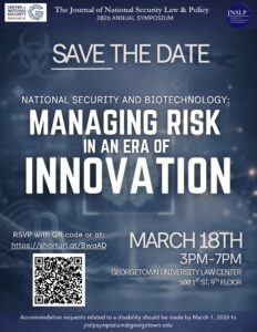 The symposium will be held on Wednesday, March 18th, 2026 on Georgetown Law’s campus, at 500 1st St NW from 3:30 pm to 7:00 pm on the 9th Floor.