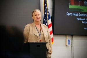 Professor Laura Donohue gave a lecture to fellows at the Georgetown Law Constitution Center on November 6, 2025 titled Open Fields Doctrine: Holmes and his Legacy.