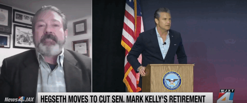 Professor Todd Huntley discusses Secretary Hegseth’s moves to cut Senator Kelly’s retirement pay and calls this a novel situation that raises a myriad of legal questions.